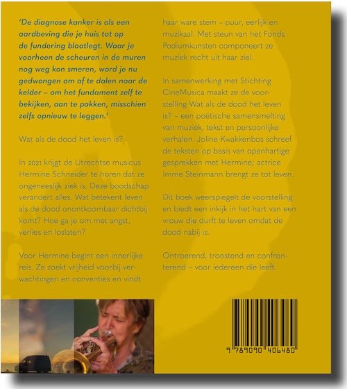 Componist en musicus Hermine Schneider – zelf ongeneeslijk ziek – neemt je mee op een poëtische, muzikale reis langs leven en sterven, hoop, vreugde en loslaten. Met reflecties, spoken word en een ensemble van strijkers, marimba, zang, percussie en Hermine zelf op trompet en bugel. Teksten van Joline Kwakkenbos, vertolkt door Imme Steinmann. Regie van Dette Glashouwer en Peer van den Berg. Een voorstelling die raakt, bevraagt, omarmt en verbindt. De voorstelling wordt zowel gespeeld in intieme theaters als binnen het circuit van palliatieve zorg.